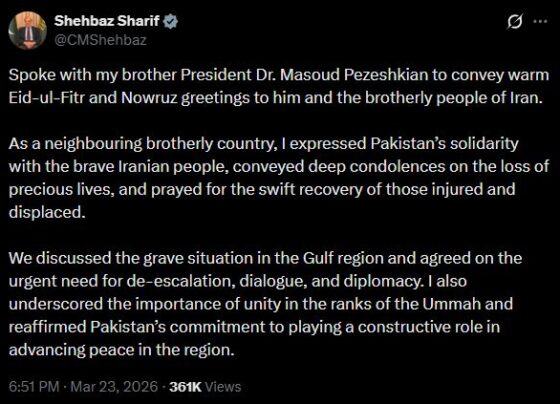 पाकिस्तान ने ईरान से बातचीत में शांति की अपील की,