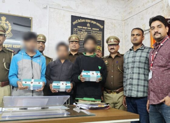 साइबर ठगी करने वाले गिरोह के तीन सदस्य गिरफ्तार,सात एंड्रायड फ़ोन सहित अन्य उपकरण बरामद