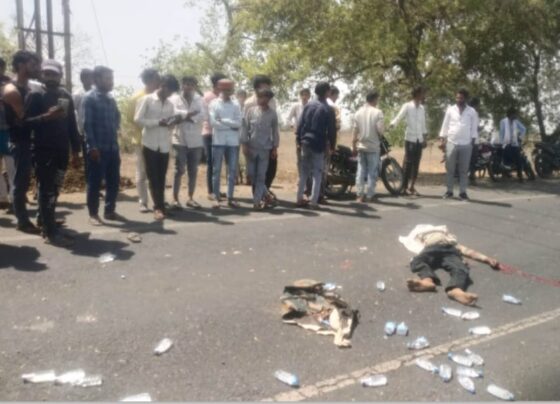 राजगढ़ःअज्ञात डंपर की टक्कर से बाइक सवार की मौत, सड़क पर बिखरे शराब के क्वार्टर