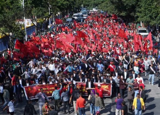 सर्वदलीय सरकार की मांग, नेपाल कम्युनिस्ट पार्टी का काठमांडू में प्रदर्शन