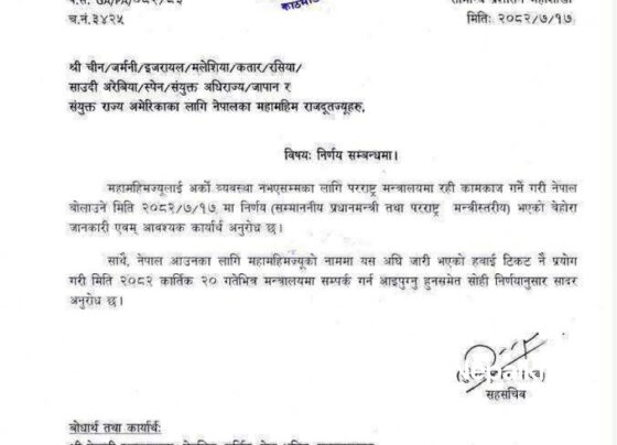 काठमांडू, 3 नवंबर (हि.स.)। विदेश मंत्रालय ने 11 विभिन्न देशों में कार्यरत नेपाली राजदूतों को तीन दिन के भीतर मंत्रालय…