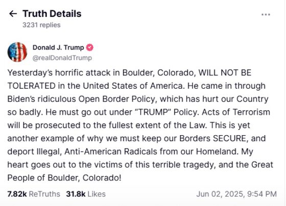 कोलोराडो हमला बाइडन की ‘खुली सीमा’ नीति का परिणाम: ट्रंप