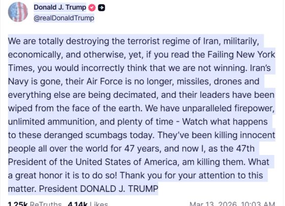 वाशिंगटन, 13 मार्च (हि.स.)। अमेरिका के राष्ट्रपति डोनाल्ड ट्रंप ने ईरान के साथ 28 फरवरी से छिड़े युद्ध के बीच…