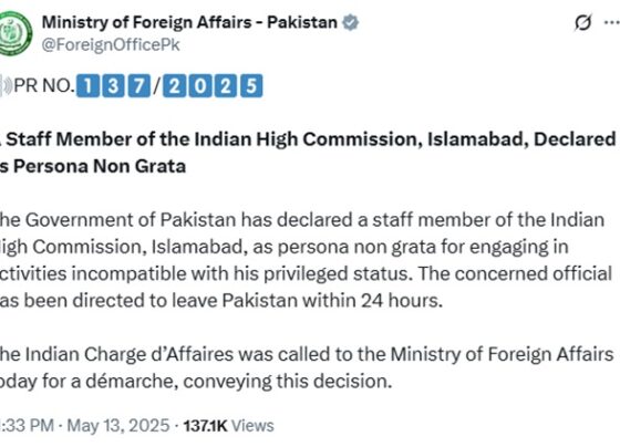 पाकिस्तान ने भारतीय अधिकारी को दिया देश छोड़ने का आदेश