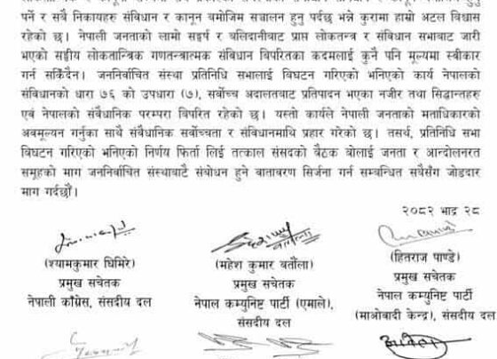 आठ राजनीतिक दलों ने की संसद पुनर्बहाली की मांग, जारी किया संयुक्त बयान