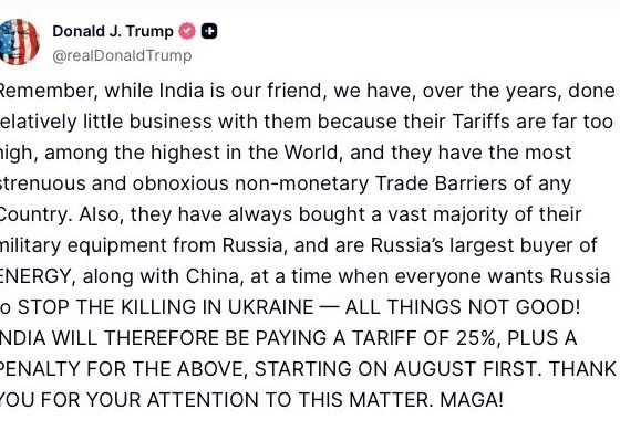 भारत पर 25 फीसदी टैरिफ लगाएगा अमेरिका, डोनाल्ड ट्रंप ने किया ऐलान