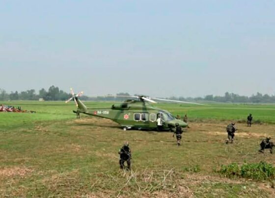 नेपाल : मतदान के दौरान नेपाली सेना के द्वारा हवाई गश्त