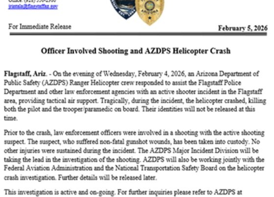 फ्लैगस्टाफ (एरिजोना) अमेरिका, 06 फरवरी (हि.स.)। अमेरिका में एरिजोना राज्य के सार्वजनिक सुरक्षा विभाग (एरिजोना डिपार्टमेंट ऑफ पब्लिक सेफ्टी) का…