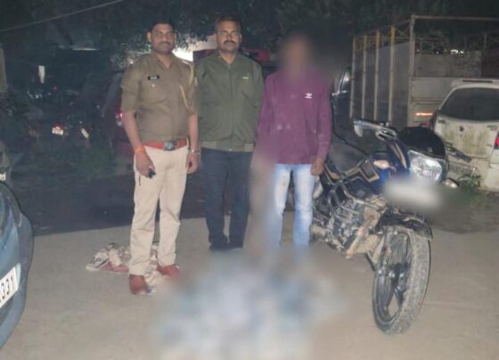 भीमपुर थाना क्षेत्र में 55.5 लीटर नेपाली शराब के साथ एक गिरफ्तार