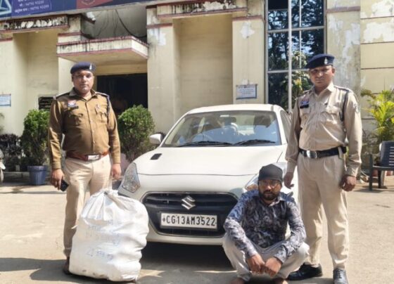 रायगढ़ पुलिस ने पहाड़ मंदिर रोड पर 21 किलो से अधिक गांजा के साथ तस्कर को किया गिरफ्तार