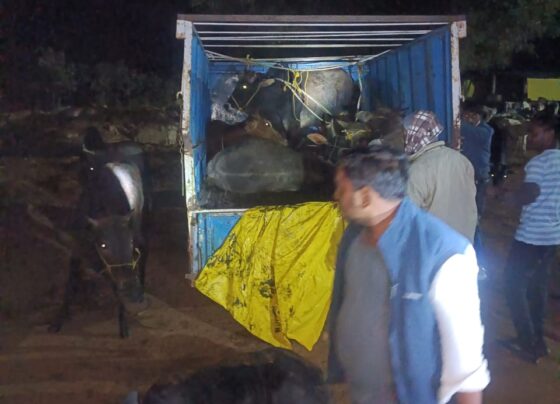 कुशियरा जंगल में पुलिस की दबिश, बैल लदी पिकअप छोड़ भागे तस्कर