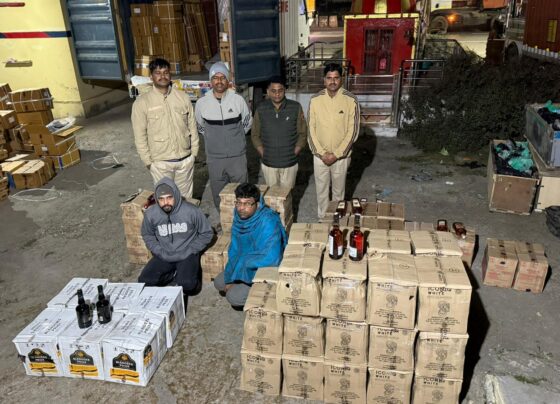 एलईडी बल्बों की आड़ में शराब तस्करी, पुलिस ने 8 लाख की अवैध अंग्रेजी शराब पकड़ी