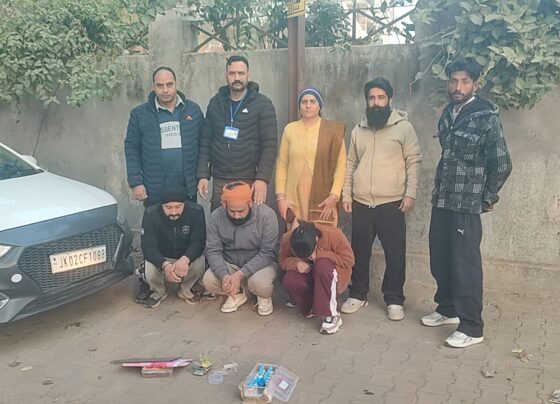 इंदौरा में 34.37 ग्राम चिट्टे के साथ युवती सहित तीन गिरफ्तार