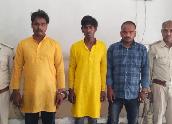 पिपरा के रामपुर में दो बोतल सोफी शराब के साथ तीन युवक गिरफ्तार,बाइक जब्त