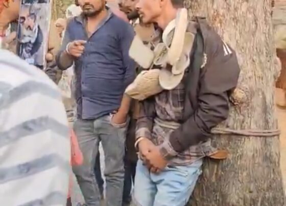 प्रेम विवाह करने पर युवक काे पेड़ से बांधकर पीटा, जूतों-चप्पलों की माला पहनाकर किया अपमान