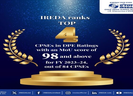 इरेडा को डीपीई से मिली ‘उत्कृष्ट’ रेटिंग, शीर्ष 4 सीपीएसई में स्थान मिला और पावर एवं एनबीएफसी क्षेत्र में नंबर 1