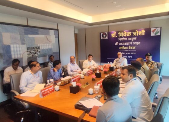 निर्वाचन आयुक्त डॉ. विवेक जोशी बिहार में निर्वाचन तैयारियों की उच्च स्तरीय समीक्षा बैठक करते