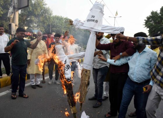 दरभंगा में पप्पू यादव के समर्थक बिहार के गृह मंत्री और उप मुख्यमंत्री का पुतला दहन करते