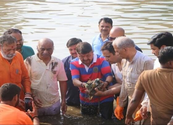 सतनाः मां मंदाकिनी के सफाई अभियान में शामिल हुए मंत्री विजयवर्गीय, बोले- श्रमदान से आयेगी जागरूकता