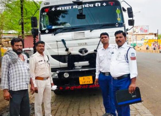 गुनाः यातायात पुलिस ने पकड़ा ओवरलोड डंपर, कोर्ट ने फटकार लगाकर ठोंका 74 हजार का जुर्माना