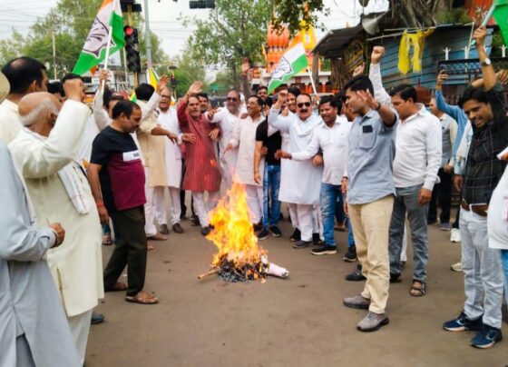 गुनाः कांग्रेस ने जलाया विजय शाह और जगदीश देवड़ा का पुतला