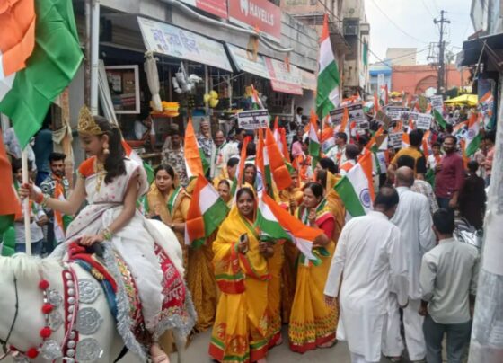 राजगढ़ःसर्वधर्म के लोगों ने निकाली तिरंगा यात्रा, जगह-जगह पुष्पवर्षा से स्वागत