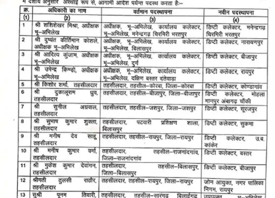छत्तीसगढ़ में 18 तहसीलदार बनाए गए डिप्टी कलेक्टर, आदेश जारी