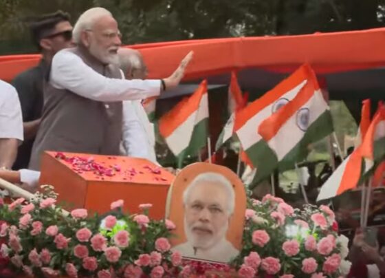 गांधीनगर में प्रधानमंत्री मोदी का भव्य रोड शो, हजारों की भीड़ उमड़ी