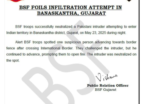 गुजरातः घुसपैठ की कोशिश कर रहे पाकिस्तानी को बीएसएफ ने ढेर किया