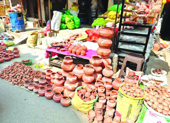स्वदेशी अपनाने की अपील : मिट्टी के दिये और मूर्तियाें से सजा बाजार