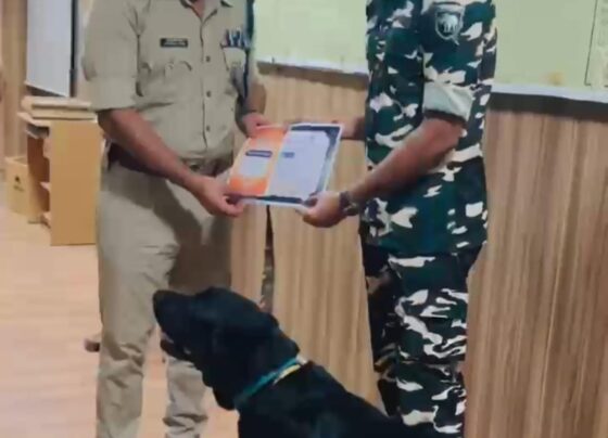 कांवड़ मेले में खोजी बिच(डॉगी) जेविन का सम्मान, एसएसपी ने सौंपा सर्टिफिकेट